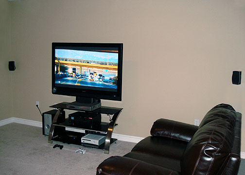 The fully equiped entertainment room including a flat panel, surround sound with concealed wiring, satellite, Xbox 360 and PS3.