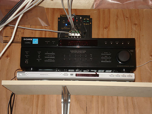 The Audio Visual Receiver and DVD player are wired and tucked away in a basement backroom hidden from view.