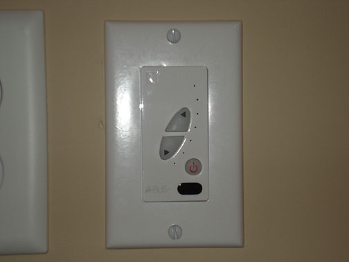 The speaker control panels are installed on the walls in key locations allowing to adjust speaker volume as well as turn off and control equipment by remote (IR) which is hidden from view in a back room.