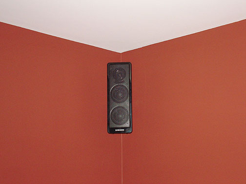 The surround speakers were neatly mounted in the back corners of the room.