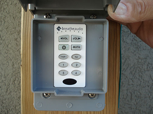 The control panels with custom covers were also installed outside to adjust speaker volumes, turn outside speakers on/off and switch between different audio sources.